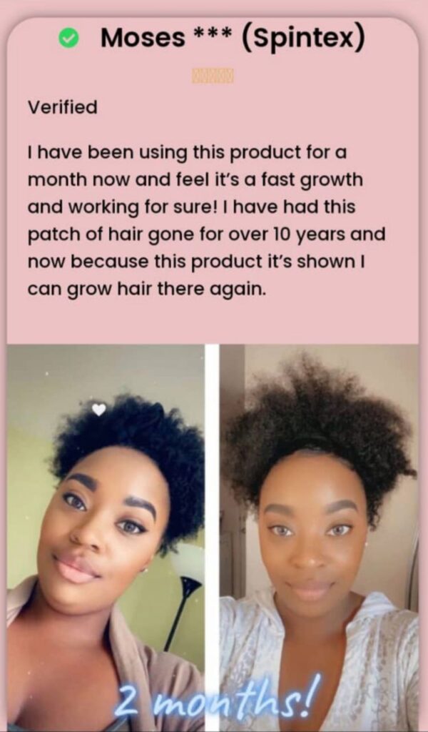 THE END HAS REALLY COME, WE HAVE A NICE AND TRUSTED HAIR GROWTH SOLUTION FOR YOU THAT WILL GIVE YOU AN AMAZING RESULT IN 7 DAYS OF USAGE